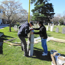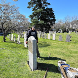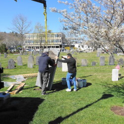 Photo #2 - Church reception Group Photo at the Cemetery May 19, 2024 during the Veterans Parade, the monument to the War Veterans of American Revolution and members in Continental Army uniform, Massachusetts Col. Henry Knox Regimental Color Guard.