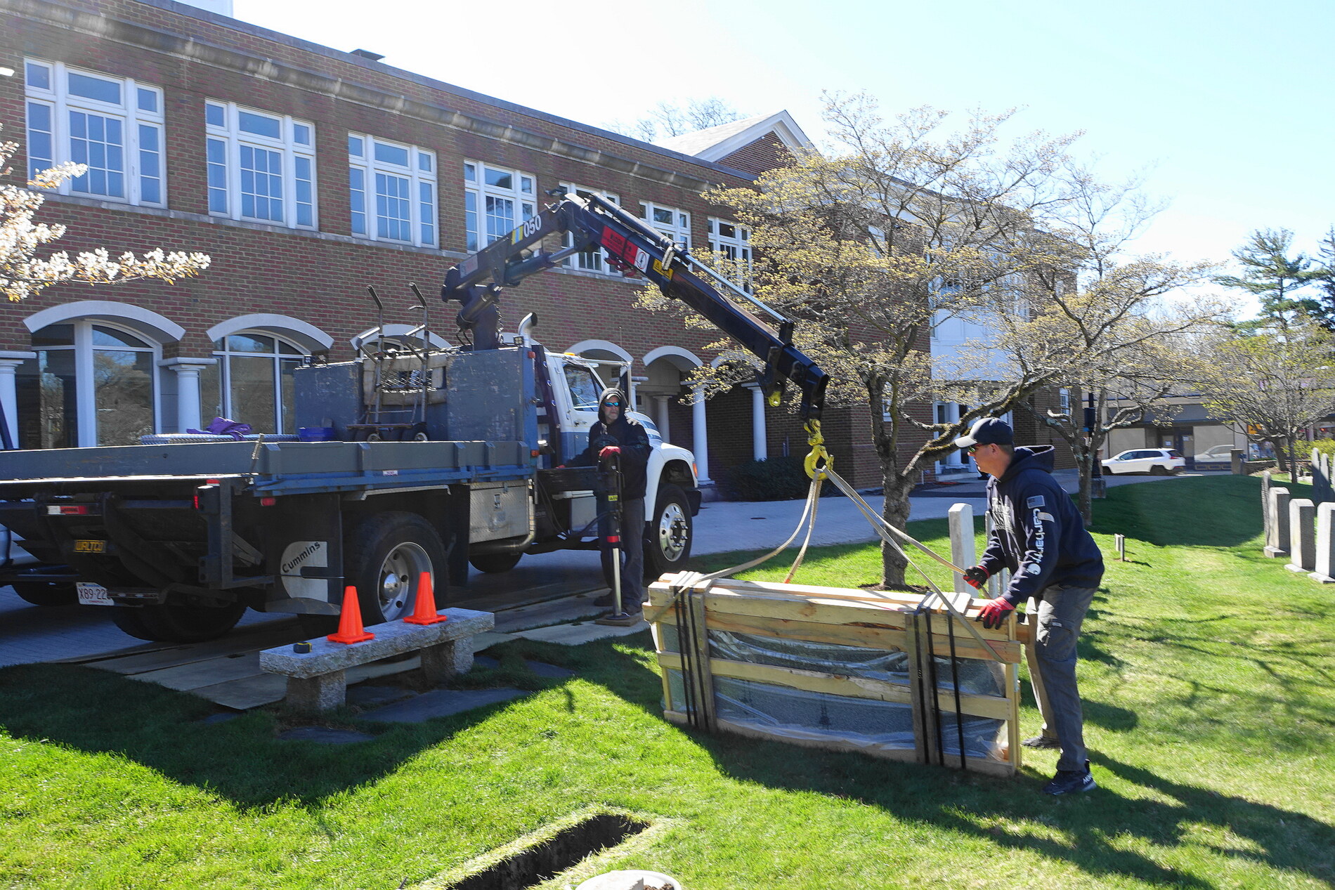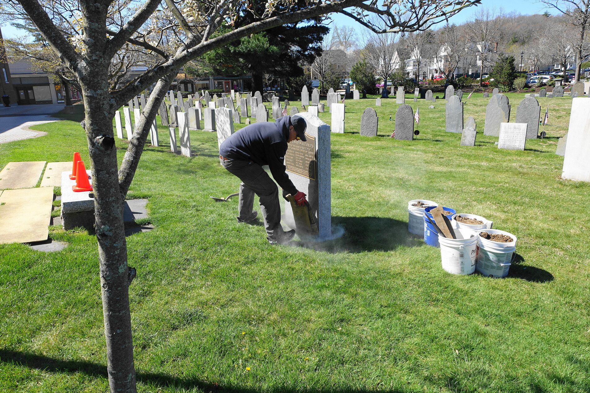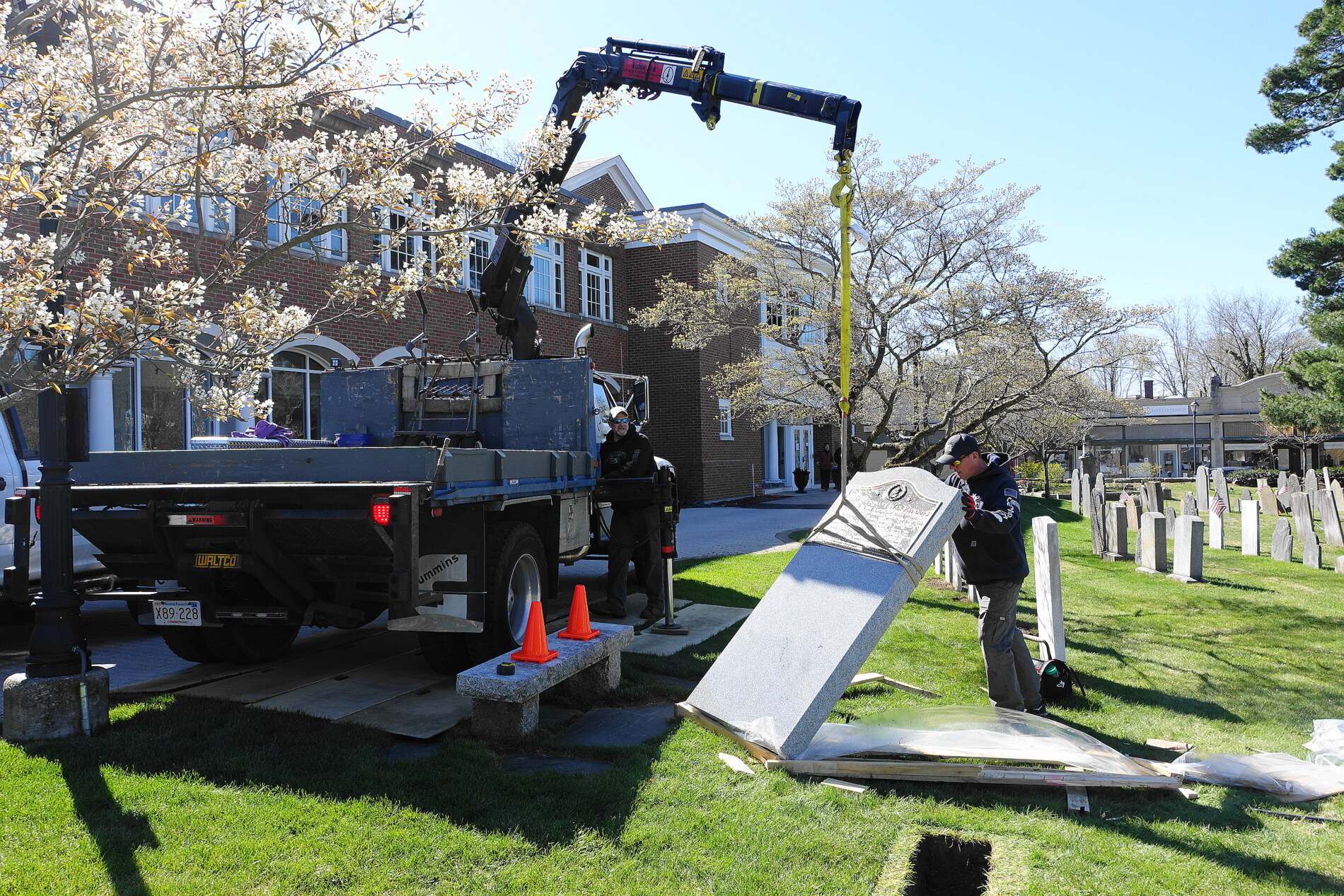 Photo #2 - Church reception Group Photo at the Cemetery May 19, 2024 during the Veterans Parade, the monument to the War Veterans of American Revolution and members in Continental Army uniform, Massachusetts Col. Henry Knox Regimental Color Guard.
