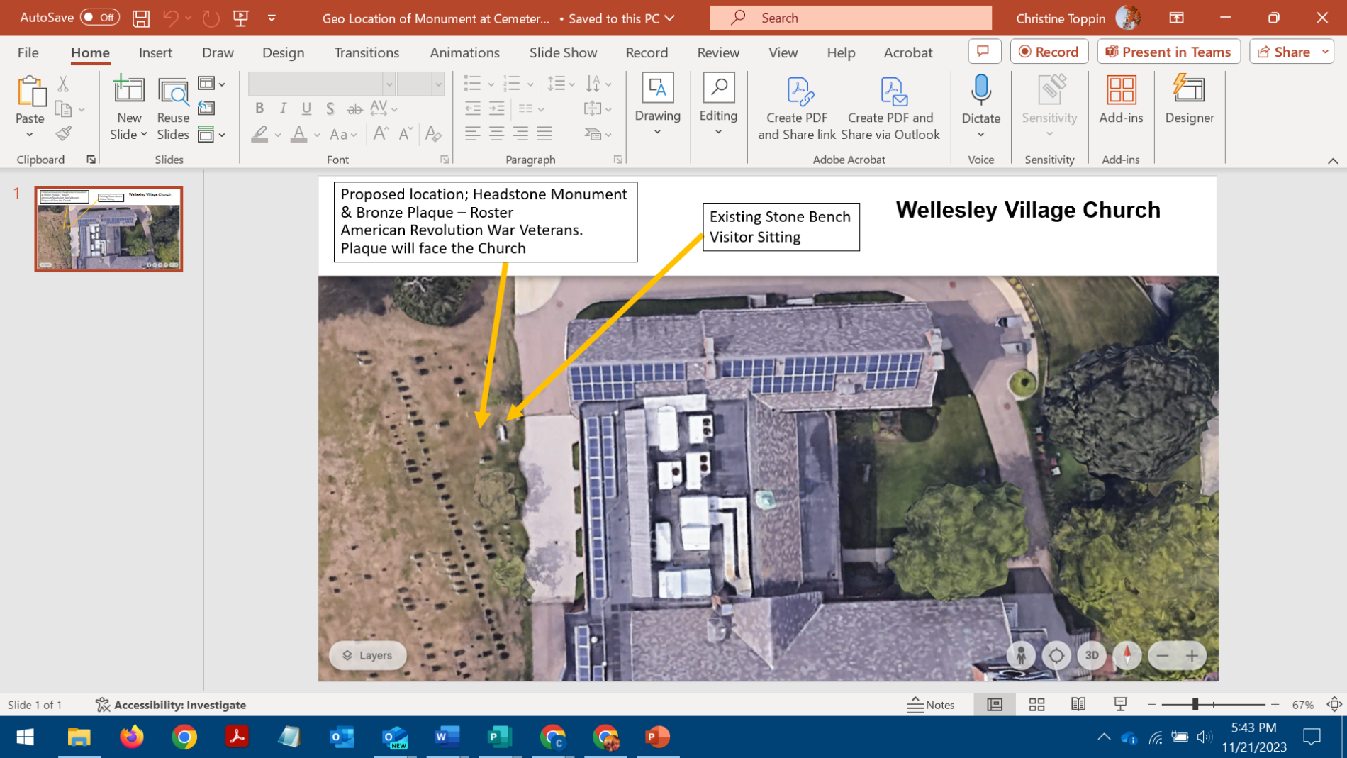 1st official viewing to the Church Congregation. Last Sunday, Veterans Day weekend, 11.12.23 Includes an image of the display in the Church Common Area.