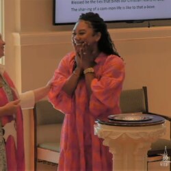 Our wonderful Board of Properties co-chair, Athené Marie Sirivallop, received the sacrament of baptism Sunday, July 21, 2024 with senior pastor, Rev. Dr. Sarah Sarchet Butter. Athené has been a member of the church since September 7, 2019. She was joined by her family, husband Ash, sons Jax and Kenzo, and her mother Mary Redd along with a joyful congregation. View this beautiful baptism via the livestream here >