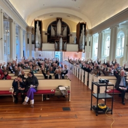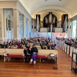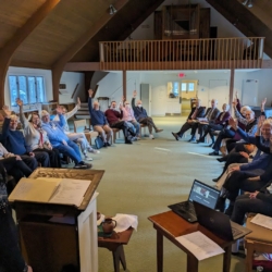 On Sunday, February 4, 2024, both Wellesley Village Church (WVC) and the Congregational Church of Weston (CCW) voted unanimously to merge. As a staunch believer that the Spirit moves in our discernment and voting in congregational meetings, I am thrilled that we had somewhere around 200 members present in person and on Zoom. This is an incredible showing - a deep thank you to all who voted. Seeing your hands raised in joy and in conviction was a moment in ministry that I will not soon forget. You all are planting, watering, and tending the seeds of fruit that will last. Merger team – Jim Mongiardo (WVC), Joe Morray (WVC), Chris Paquin (CCW), Paul Schendel (CCW), John Snyder (WVC) and Rev. Martha Schick (WVC & CCW) – Working along side this team and the faithful folks in both churches who have worked so hard on this partnership has been an honor. These leaders are such an example of careful and faithful discernment and following where God is calling, even when we don’t know exactly what we’re being called to. - Rev. Martha Schick, Pastoral Resident, 2nd year Here is a link to the website news page with details >