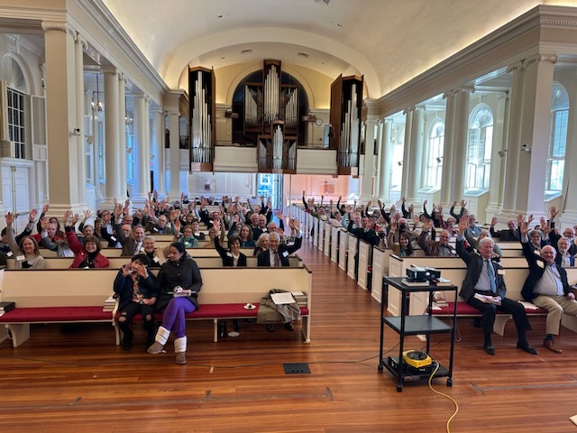 On Sunday, February 4, 2024, both Wellesley Village Church (WVC) and the Congregational Church of Weston (CCW) voted unanimously to merge. As a staunch believer that the Spirit moves in our discernment and voting in congregational meetings, I am thrilled that we had somewhere around 200 members present in person and on Zoom. This is an incredible showing - a deep thank you to all who voted. Seeing your hands raised in joy and in conviction was a moment in ministry that I will not soon forget. You all are planting, watering, and tending the seeds of fruit that will last. Merger team – Jim Mongiardo (WVC), Joe Morray (WVC), Chris Paquin (CCW), Paul Schendel (CCW), John Snyder (WVC) and Rev. Martha Schick (WVC & CCW) – Working along side this team and the faithful folks in both churches who have worked so hard on this partnership has been an honor. These leaders are such an example of careful and faithful discernment and following where God is calling, even when we don’t know exactly what we’re being called to. - Rev. Martha Schick, Pastoral Resident, 2nd year Here is a link to the website news page with details >