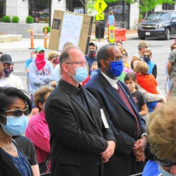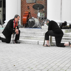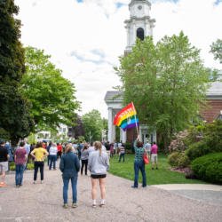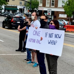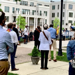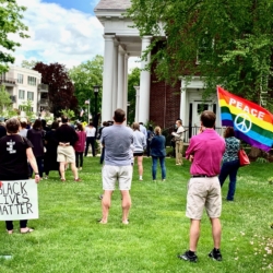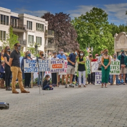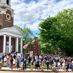 Photos by: Deborah Brown/Swellesley Report, Brad Bittenbender, Beth Shedd, & Douglas Eisenhart Demonstrators and a multi-faith leaders gathered Sunday, June 7th from 4 to 5pm in solidarity on the Wellesley Village Church lawn, sidewalks, church steps and driveway for music, reflection and prayer