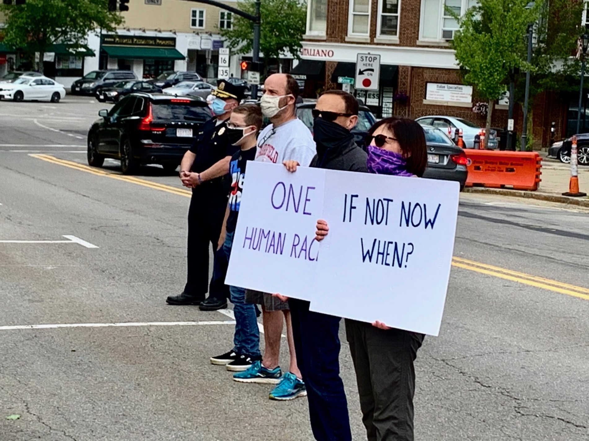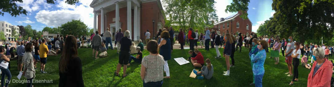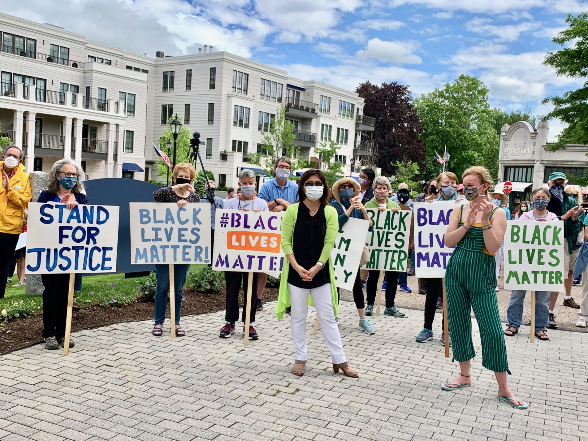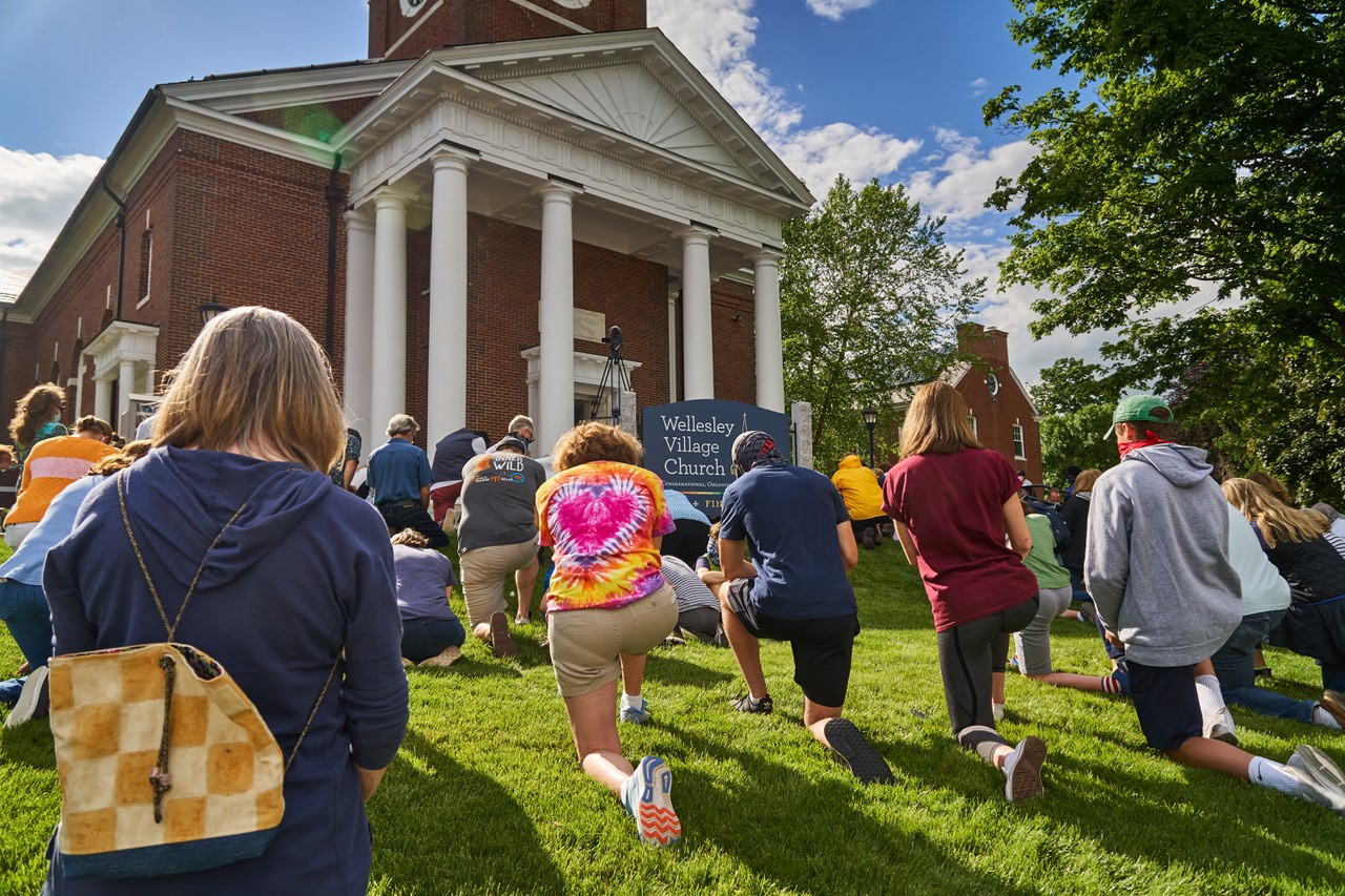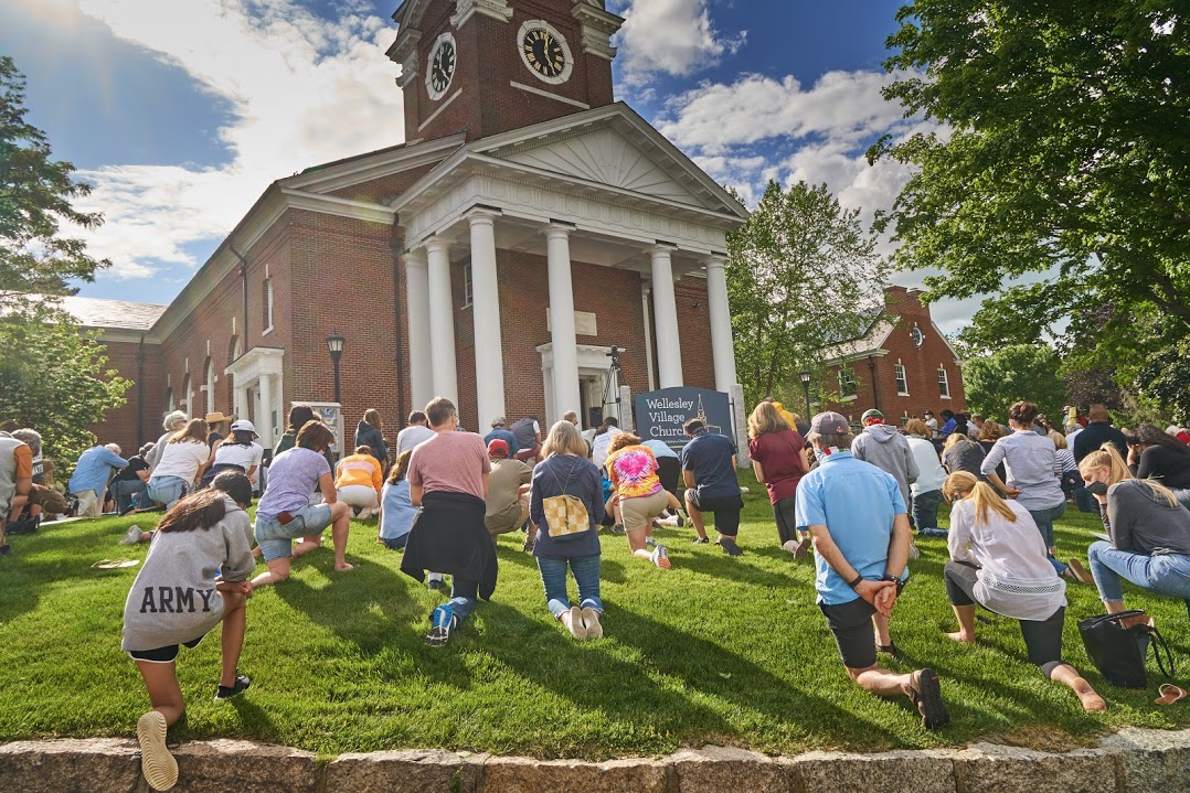 Photos by: Deborah Brown/Swellesley Report, Brad Bittenbender, Beth Shedd, & Douglas Eisenhart Demonstrators and a multi-faith leaders gathered Sunday, June 7th from 4 to 5pm in solidarity on the Wellesley Village Church lawn, sidewalks, church steps and driveway for music, reflection and prayer