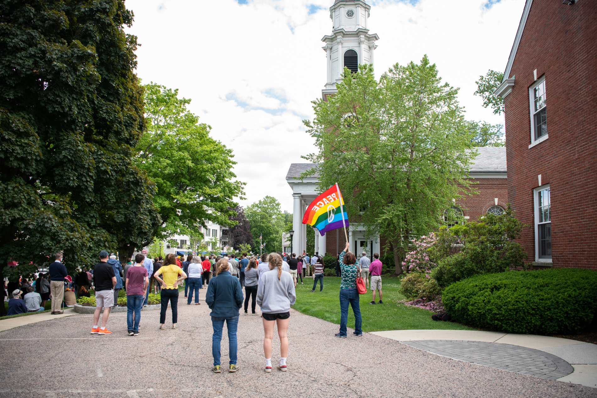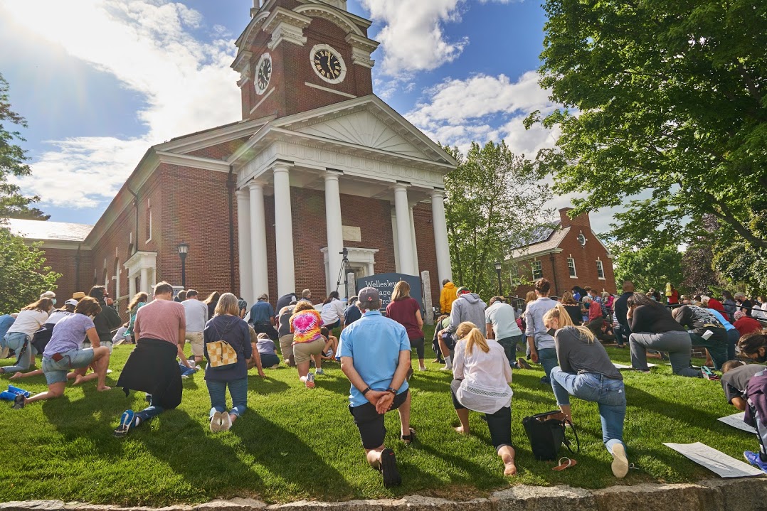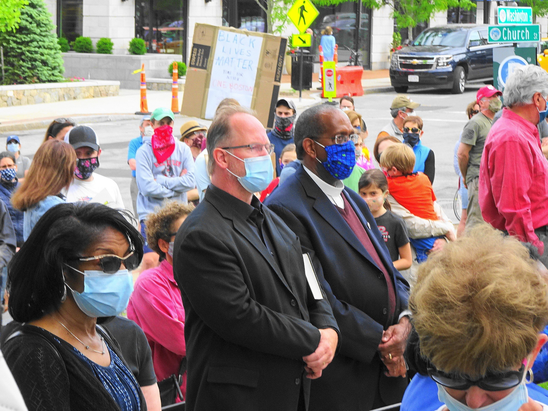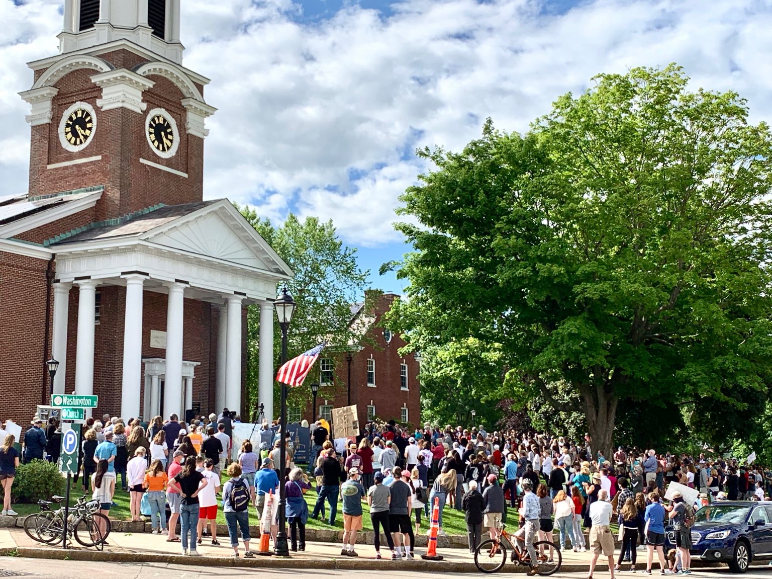 Photos by: Deborah Brown/Swellesley Report, Brad Bittenbender, Beth Shedd, & Douglas Eisenhart Demonstrators and a multi-faith leaders gathered Sunday, June 7th from 4 to 5pm in solidarity on the Wellesley Village Church lawn, sidewalks, church steps and driveway for music, reflection and prayer