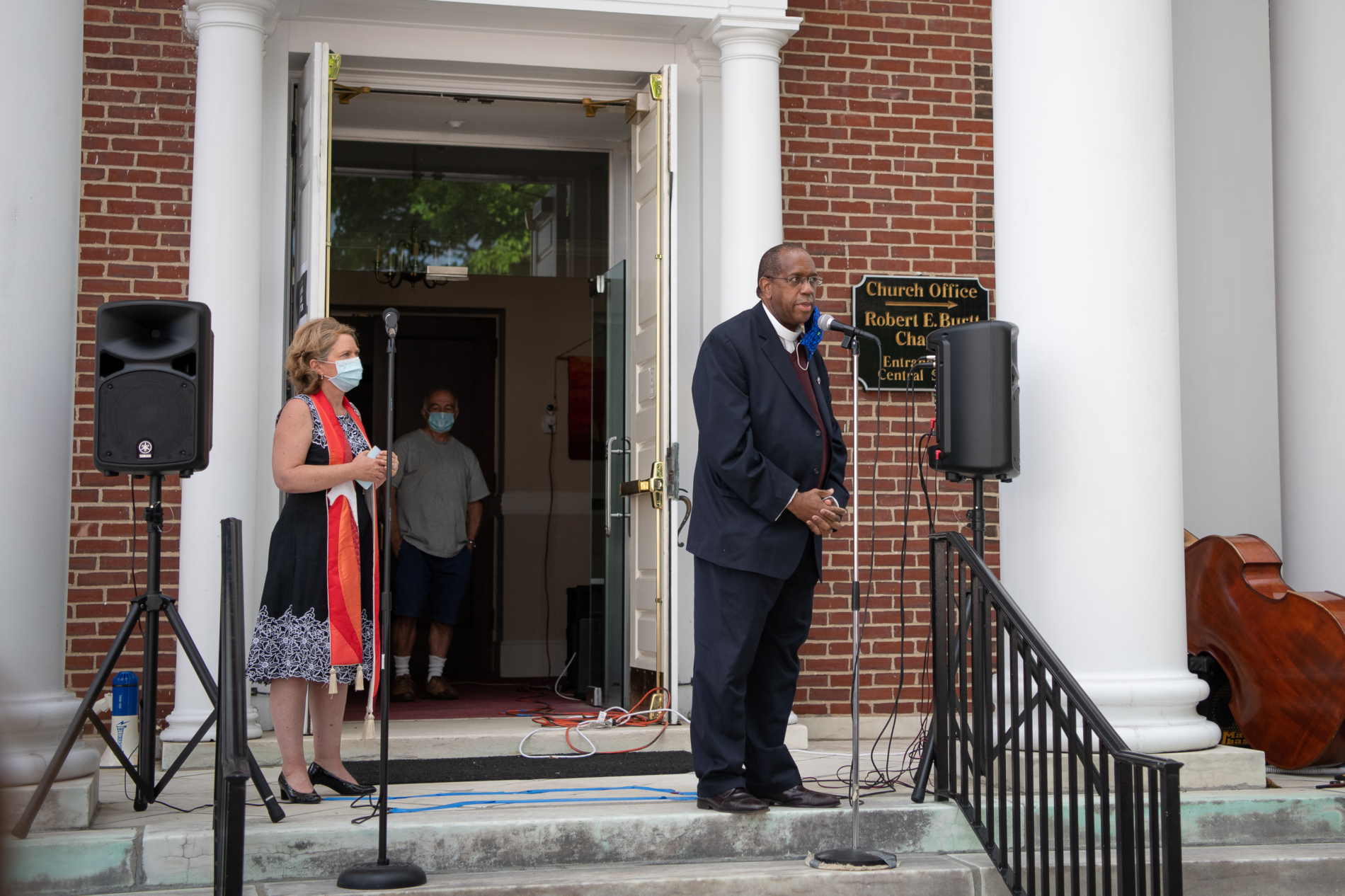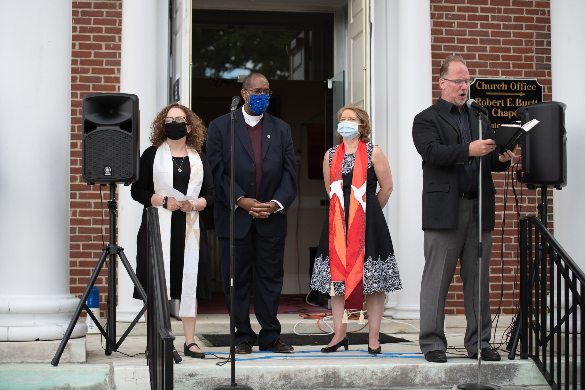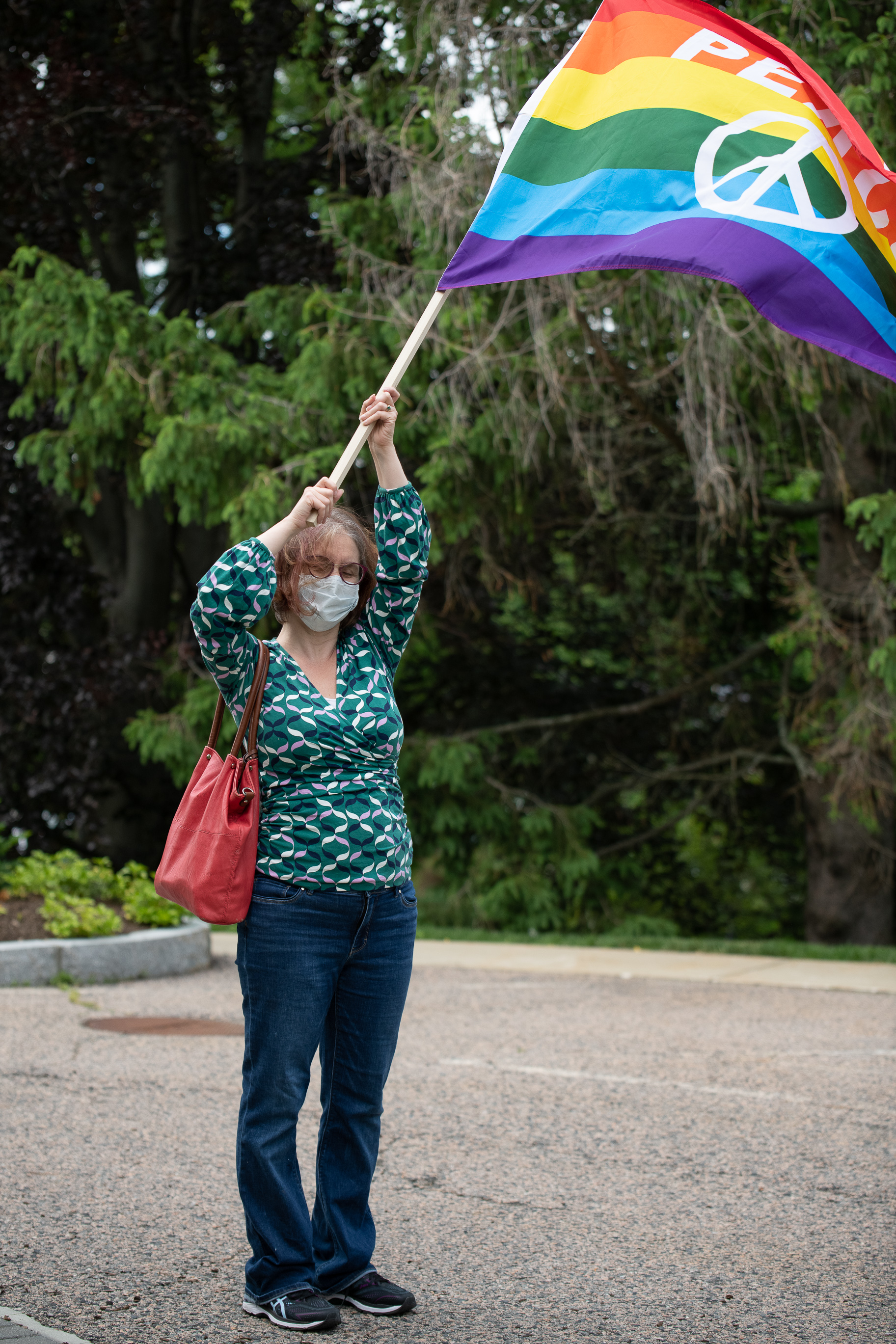 Photos by: Deborah Brown/Swellesley Report, Brad Bittenbender, Beth Shedd, & Douglas Eisenhart Demonstrators and a multi-faith leaders gathered Sunday, June 7th from 4 to 5pm in solidarity on the Wellesley Village Church lawn, sidewalks, church steps and driveway for music, reflection and prayer