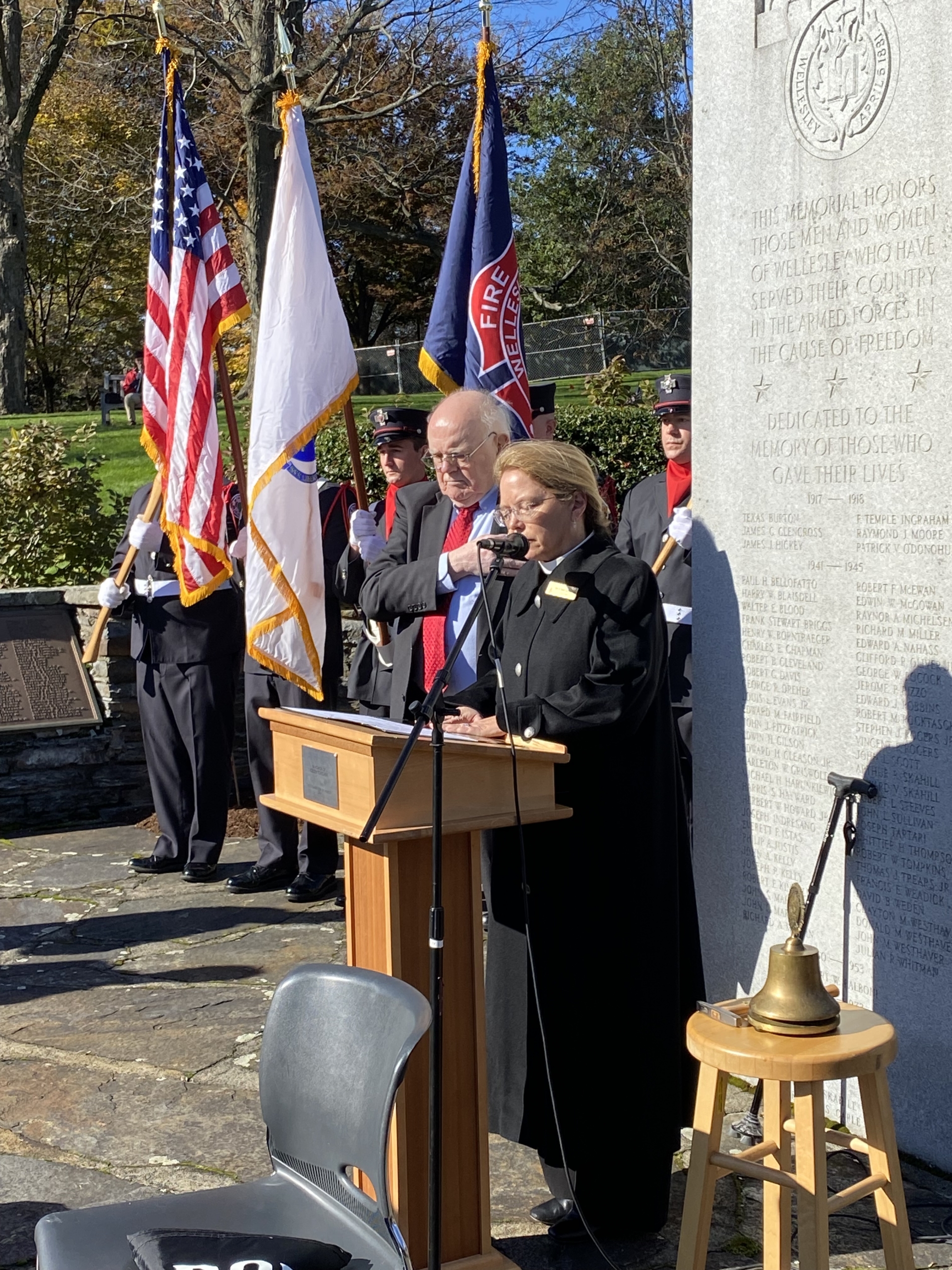Rev. Dr. Sarah Sarchet Butter delivers a blessing at the Veterans Day ceremony, Saturday, November 11, 2023.