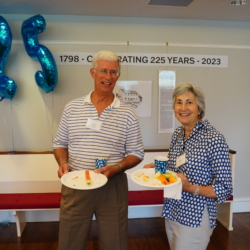 Welcome Sunday, September 10, 2023 kicked off our 225th Anniversary celebration. Despite the intermittent rain, fun was had by all with an all-age bouncy house, burgers, hotdogs and 225 cupcakes baked by many volunteers. Special thanks to church members Santa Wiryaman and Brad Bittenbender for many of these lovely photos.