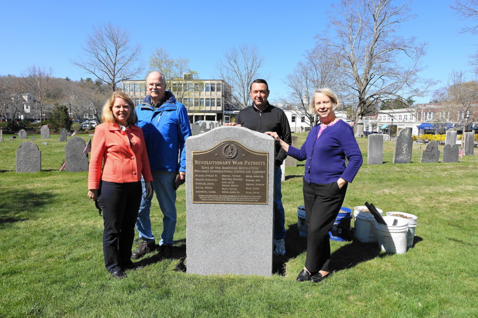 On Monday April 22, 2024 the granite monument and embedded bronze plaque to 16 Revolutionary War Veterans was set by the Society of the Sons of the American Revolution & Wellesley Congregational Church at the Church Cemetery. Project inspiration began June of 2020 then delay in the plaque due to the pandemic, a flood at the foundry, a post Covid shortage in molding supplies then finally delivery in August 2023.