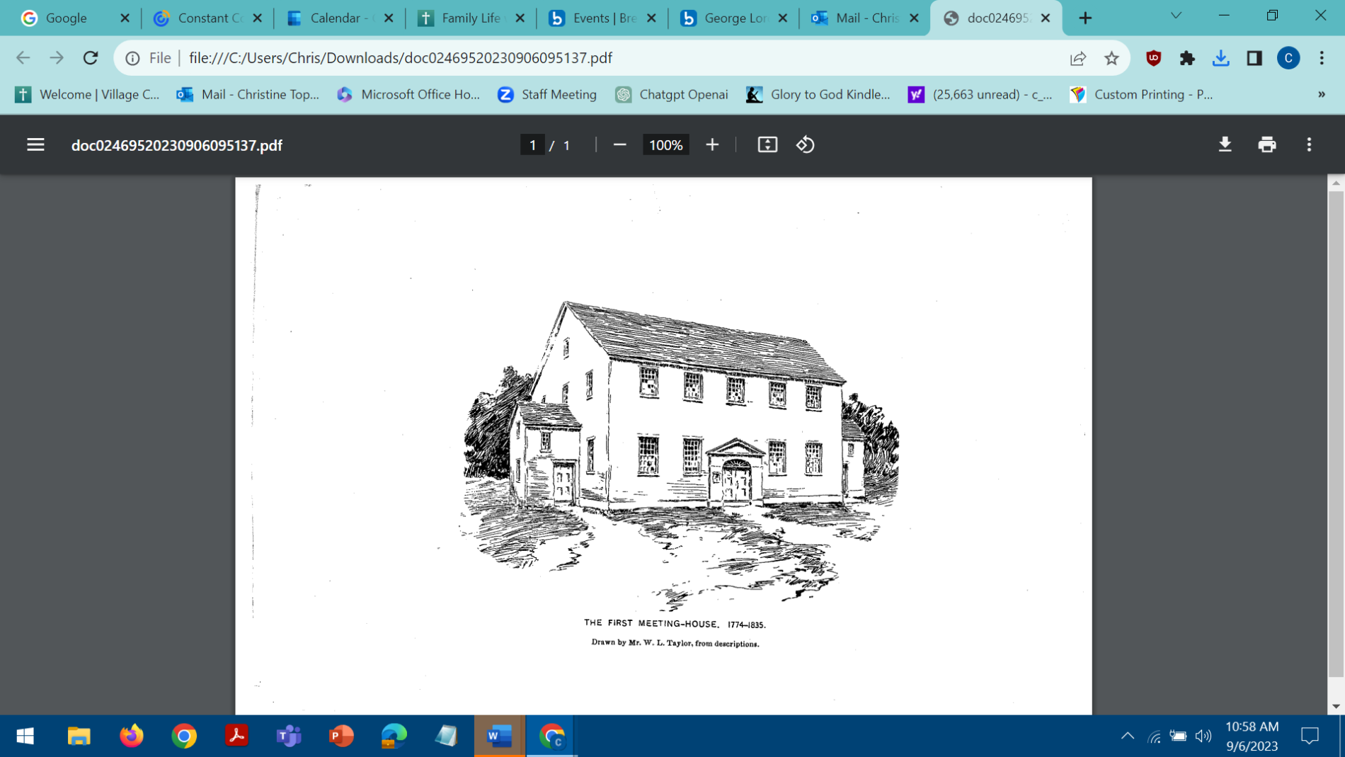 Image: First Meeting-House, 1774-1835 drawn by Mr. W.L. Taylor from descriptions